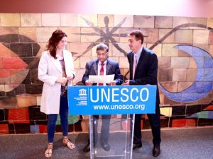 Remise du diplôme du lauréat du prix Areopagus Arts Apllon Prof. Vladimir Naumov, le Président russe à l'Académie du Film,...