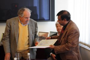 Remise du diplôme du lauréat du prix Areopagus Arts Apllon Prof. Vladimir Naumov, le Président russe à l'Académie du Film,...